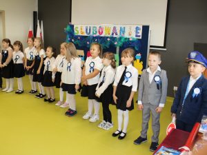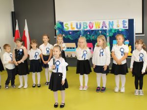Ślubowanie klas pierwszych to od lat niezwykłe i pełne uniesienia wydarzenie w naszej szkole. W tym roku miało ono miejsce 11 października 2024 r. W tym dniu świętowaliśmy również Dzień Edukacji Narodowej. Był to dzień długo wyczekiwany przez dzieci, wychowawców i Rodziców. Podczas ceremonii ślubowania 14 pierwszoklasistów dało słowo honoru: poważnego traktowania swoich uczniowskich obowiązków, oraz dążenia do zdobycia wymarzonego zawodu. Następnie Pani Dyrektor Aldona Orzeł-Chechłowska dokonała aktu pasowania i wręczyła pamiątkowe dyplomy. Rada Rodziców ofiarowała piękne słowniki a Rodzice słodkie niespodzianki. Części artystyczna wywołała wielkie wrażenie. Pierwszaki zaprezentowały swoje talenty wzbudzając aplauz wśród zgromadzonej publiczności. Po zakończeniu części oficjalnej uczniowie zgodnie z tradycją udali się do swojej klasy na słodki poczęstunek zorganizowany przez dumnych Rodziców.